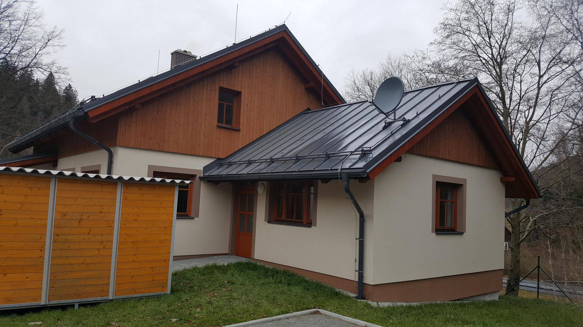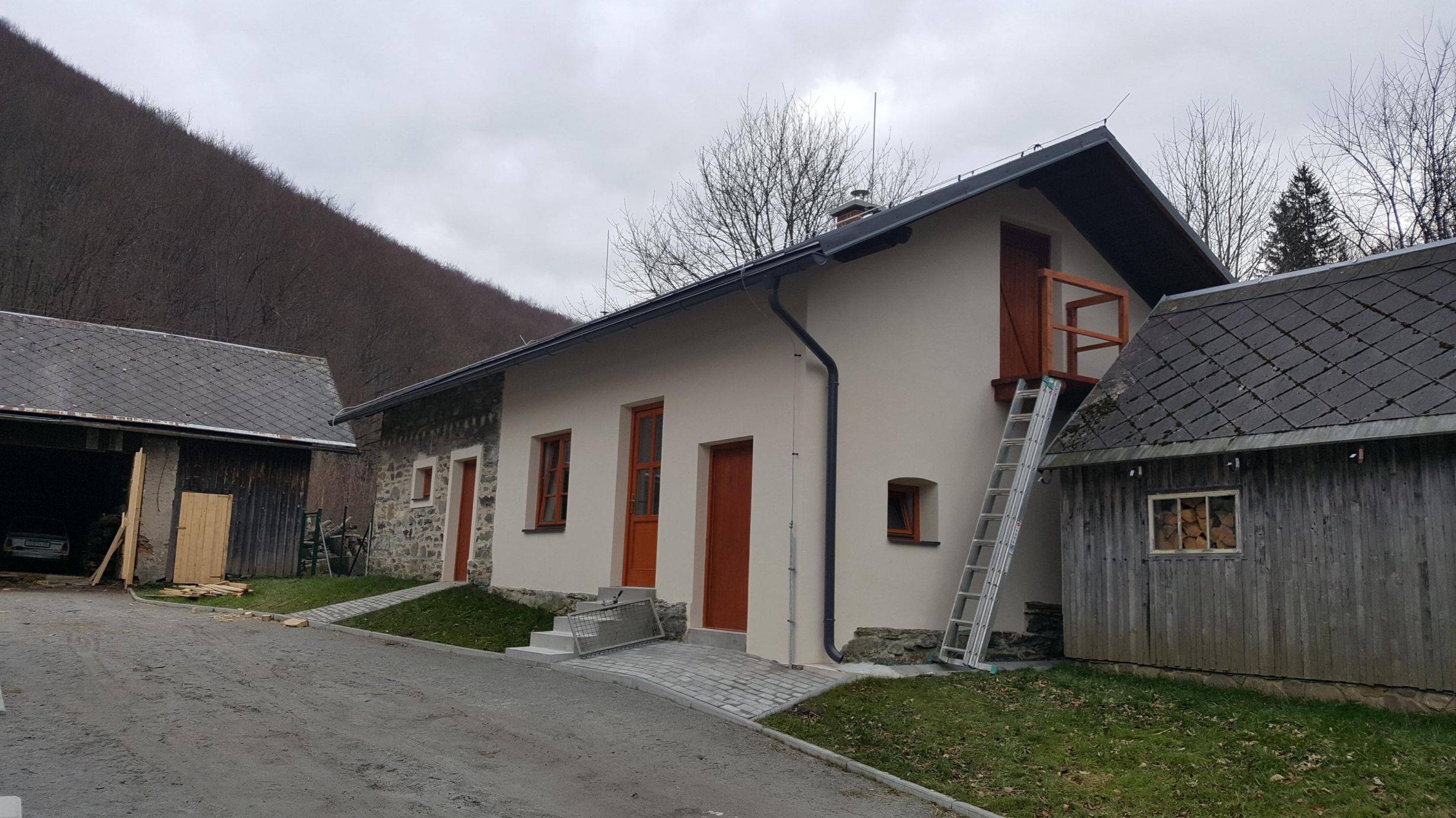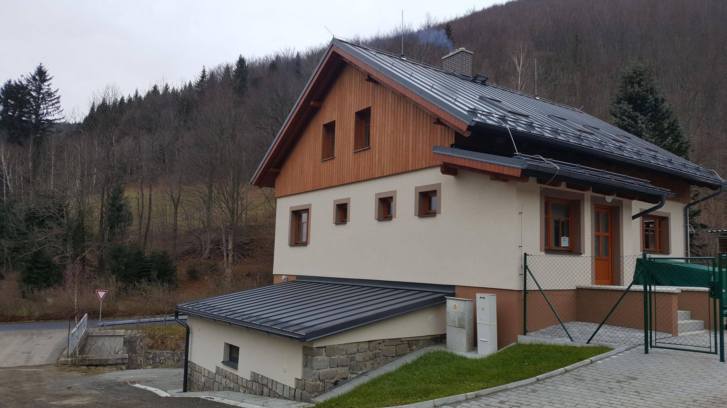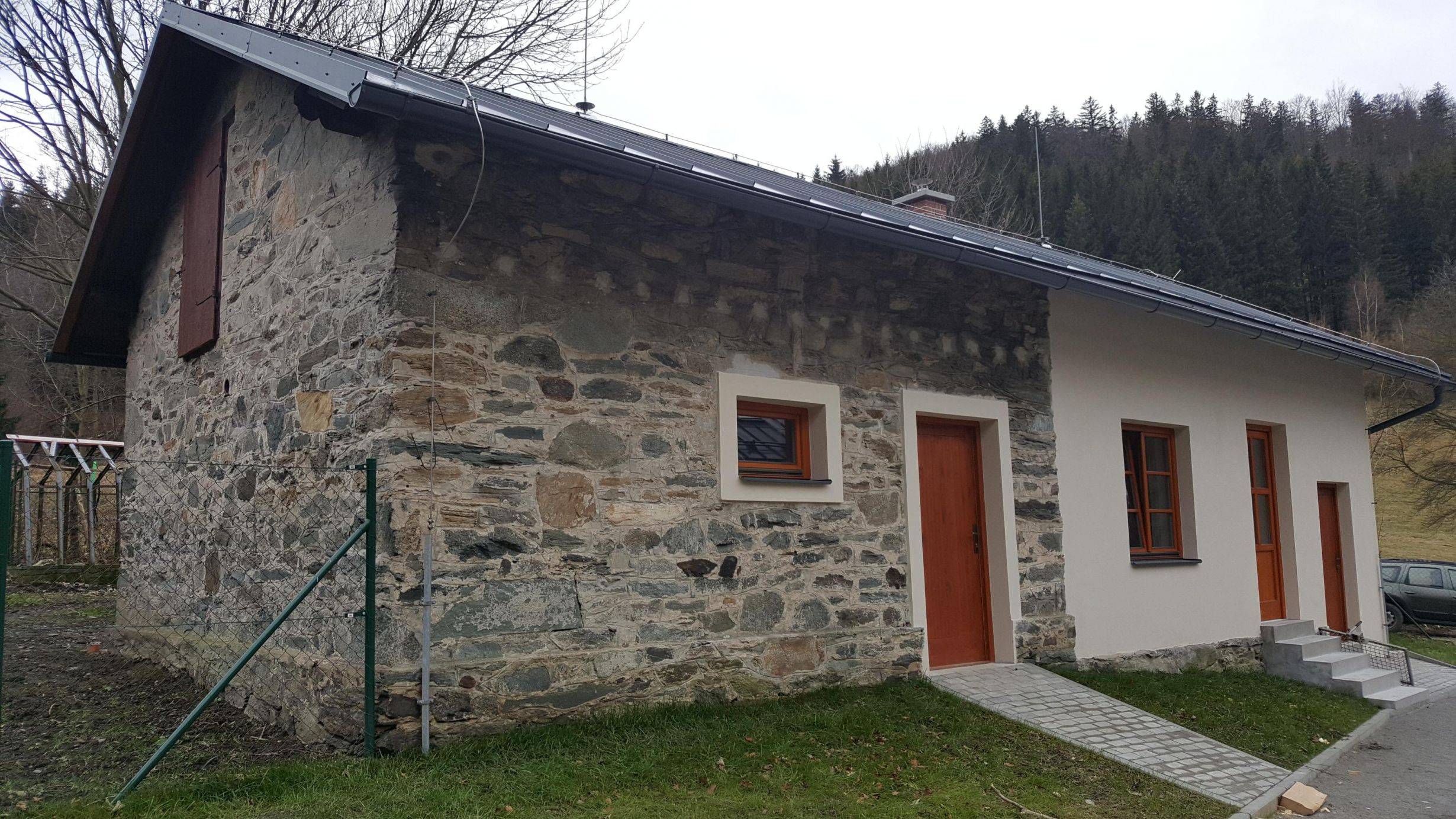Hájenka BěláNovostavba hájenky v Bělé, k.ú. Domašov u Jeseníka. Předmětem dokumentace byla nová stavba navržena na místě původní hájenky, úprava zpevněných ploch, ČOV, odvod dešťových vod, úprava části rozvodu pitné vody ze stávajícího vrtu a úprava oplocení. Jedná se o stavbu trvalou. Součástí novostavby byl původní suterén a původní přístavba garáže v úrovni suterénu. Nadzemní části původního objektu, který do nedávna sloužil jako hájenka, byly před realizací odstraněny. Novostavba byla navržena na místě původní hájenky a bude sloužit pro bydlení (např. lesního správce). Součástí nově navržené budovy je kancelář se zázemím, která je přístupná samostatným vchodem. Firma ARCHILINE při realizaci vykonávala autorský dozor. |